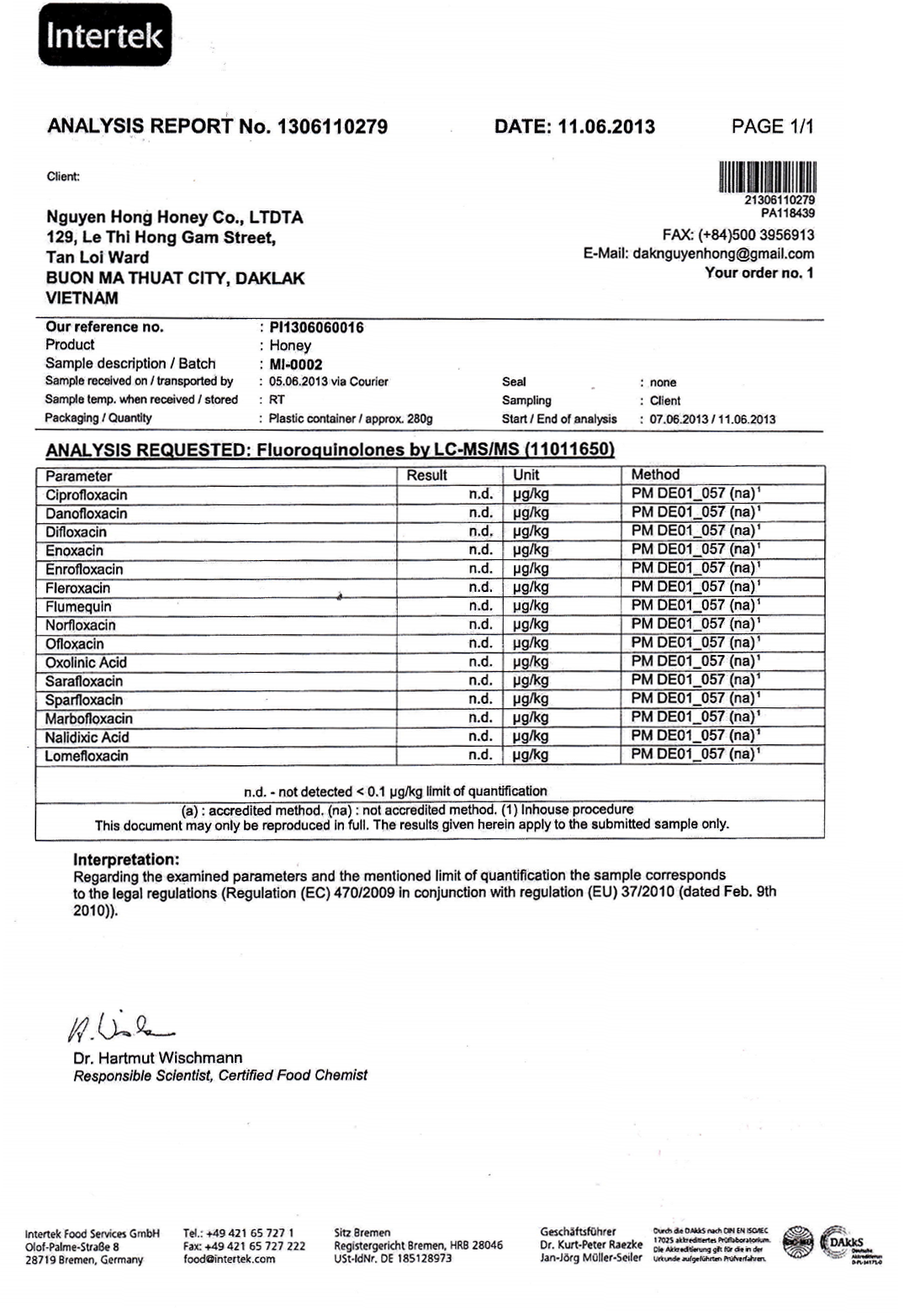 Sản phẩm của Đắk Nguyên Hồng là sản phẩm được kiểm soát nghiêm ngặt từ người sản xuất nên chất lượng luôn ổn định tốt, 100% các lô hàng của Đắk Nguyên Hồng trước khi giao cho khách hàng đã được kiểm định tại INTERTEK cộng hòa Liên Bang Đức